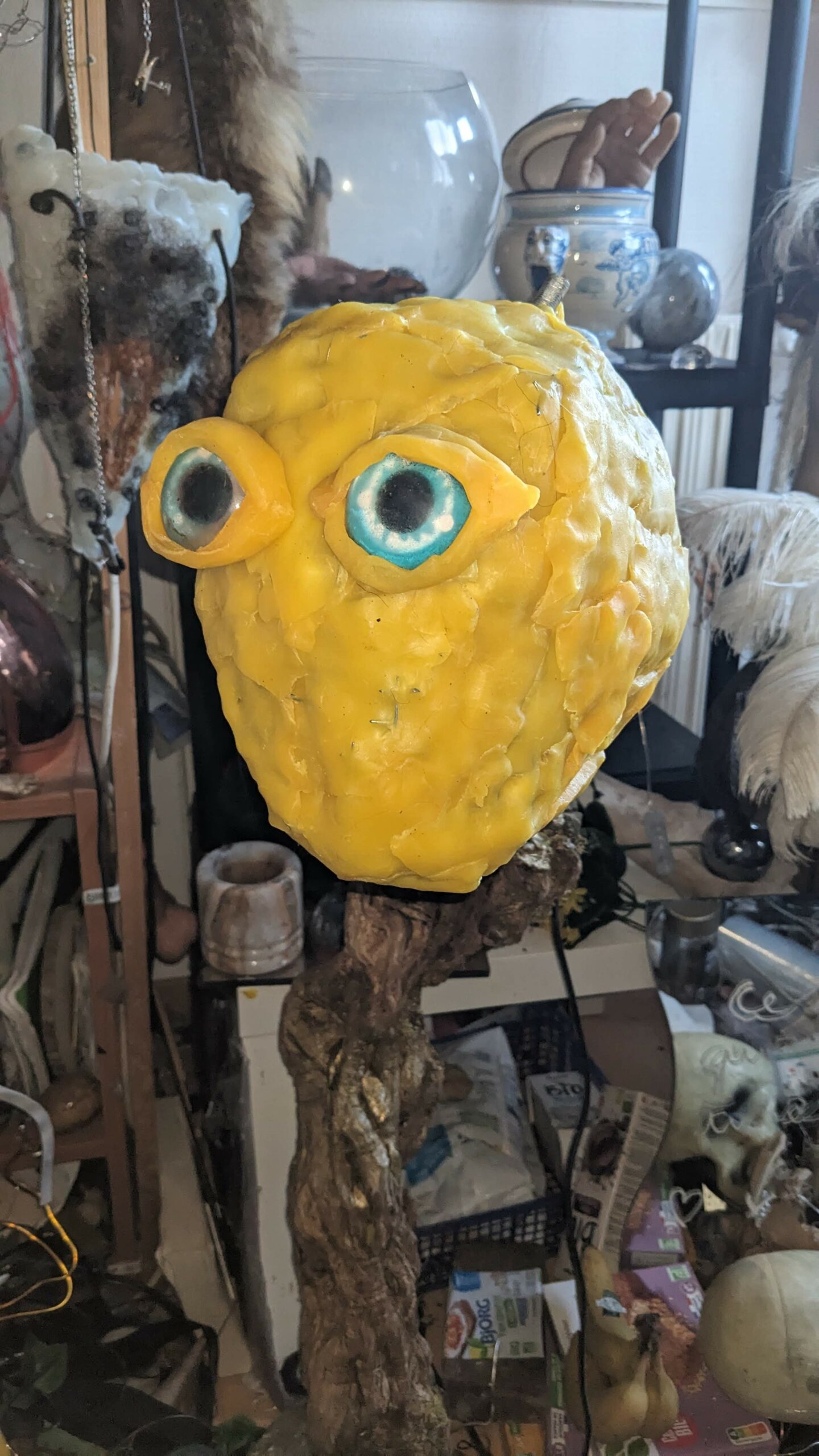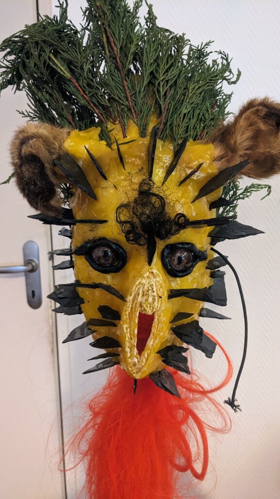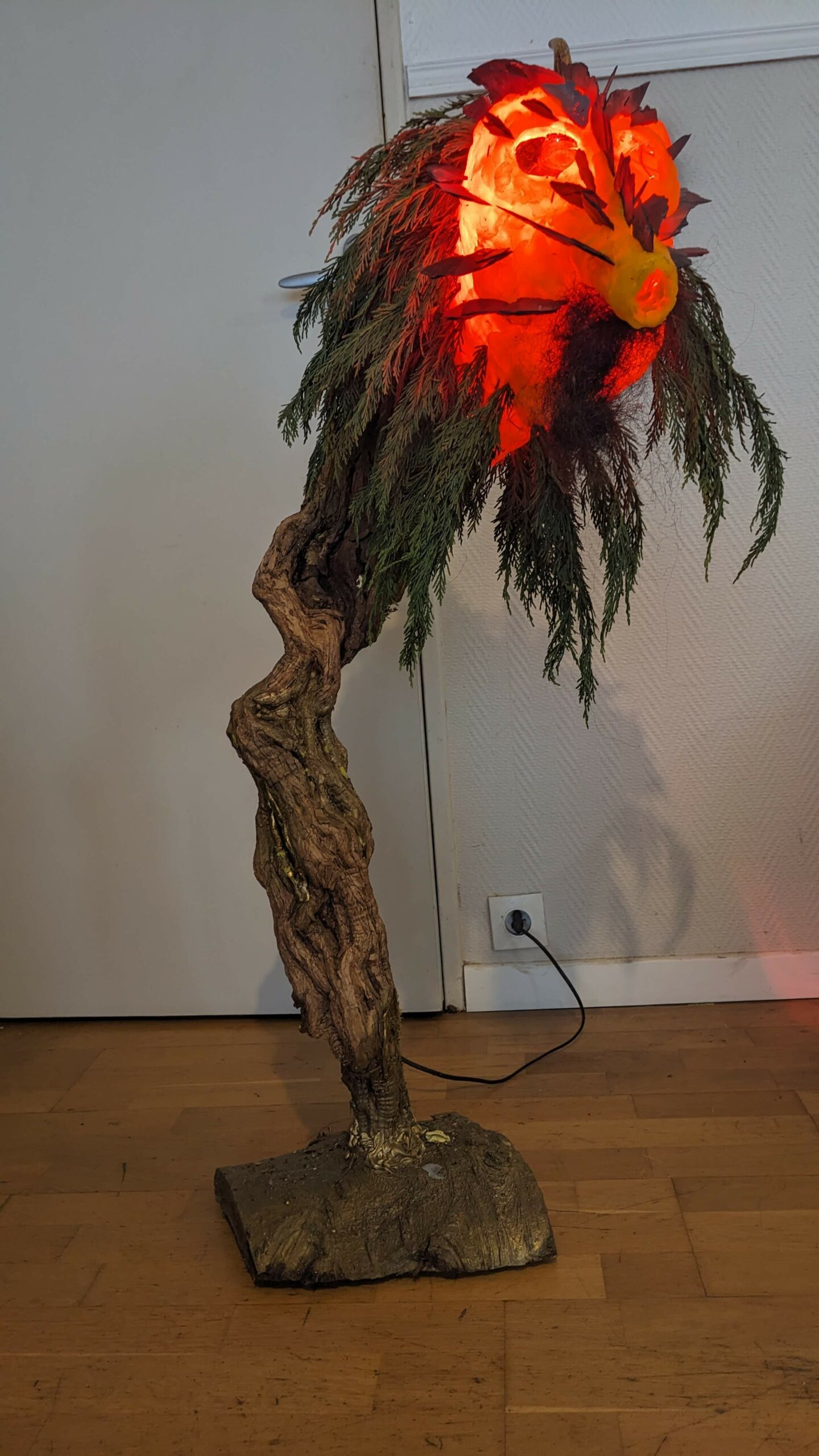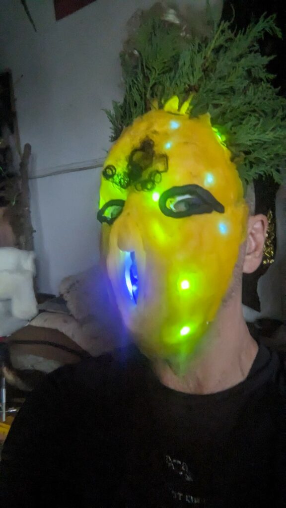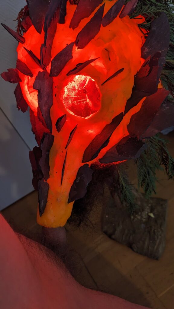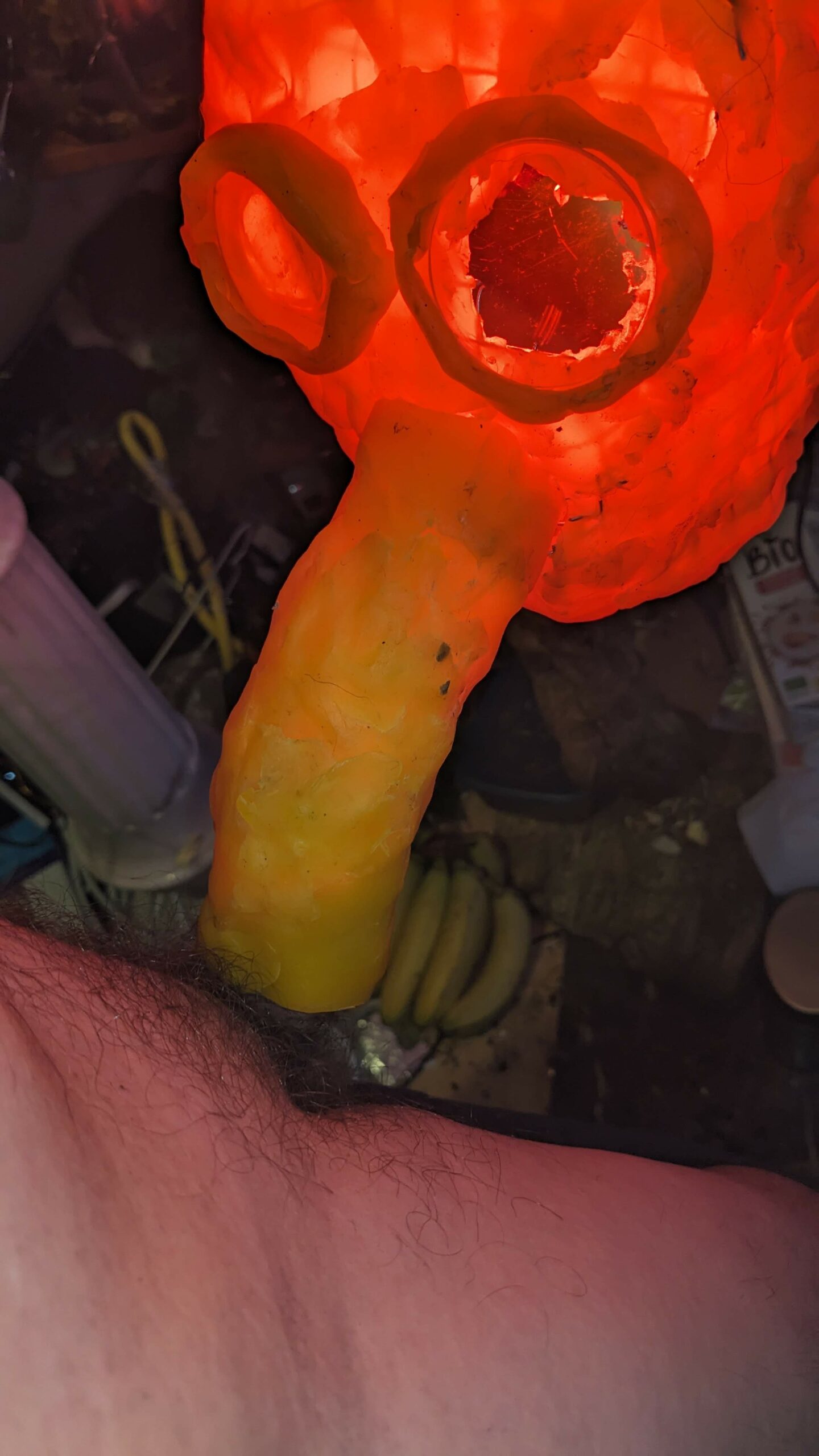 est : lampe himérinale, himérétique (favorise magiquement l’envie bestialeuse de sexe ! c’est ça, oui, oui), fixe-mâle, mobile-femelle, mélangeation de genre (animal, végértal, humain, unique-multiple, hermaaaafrodite), qui vit, qui meurt, dont la bite est baisable, qui peut s’auto-lécher le clito, qui peut faire une cunni-danse, je suis aussi la lampe et porte le masque vulvique, ha, ha, du pornolithique, petite phénoménologie de la temporalité de ma transidentité, puis aussi, contient du dedans qui contemple le dehors où nous sommes, et inversement dans l’autre sens bien sûr, ‘est prodigieux d’abymisationnement…