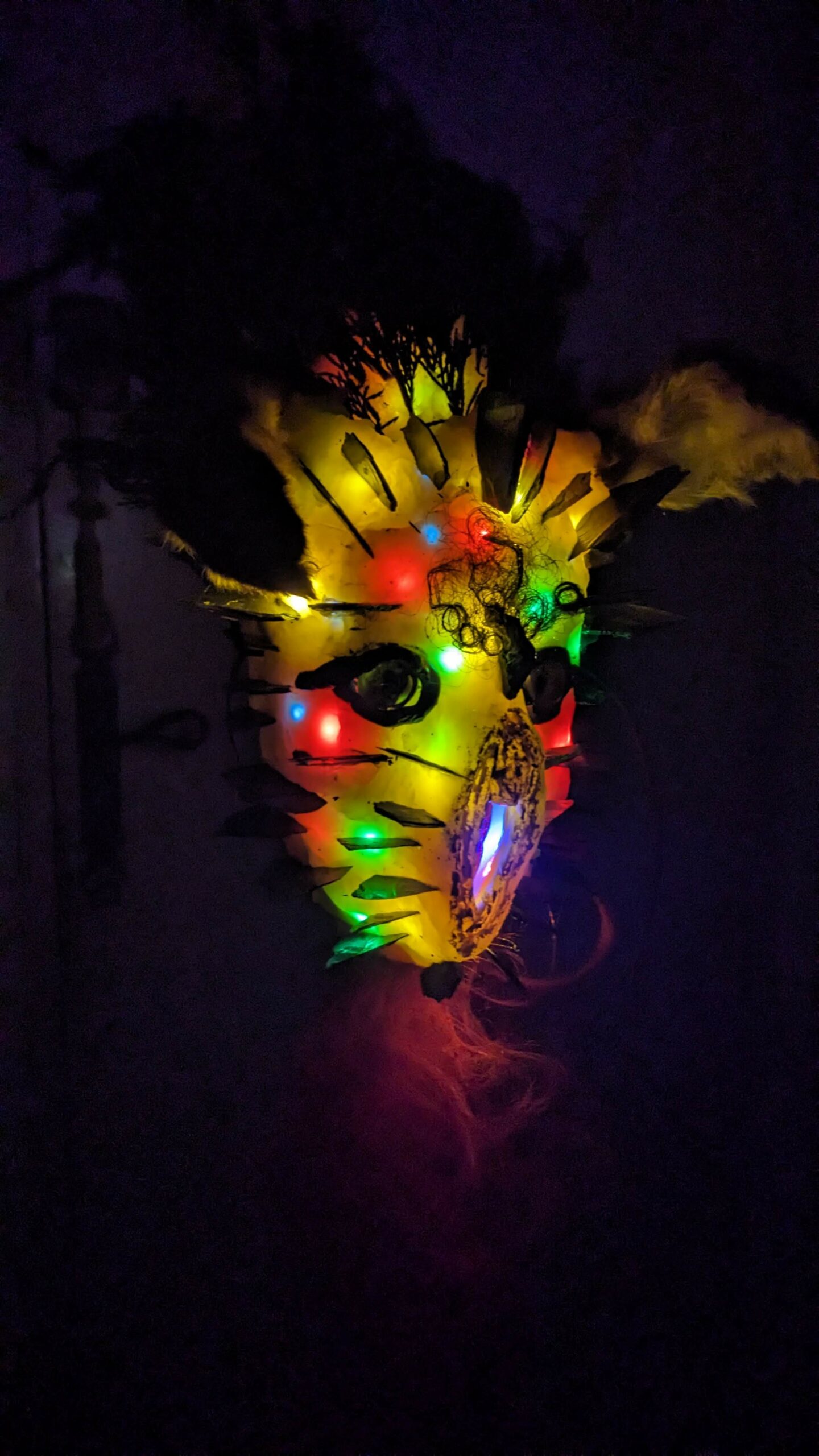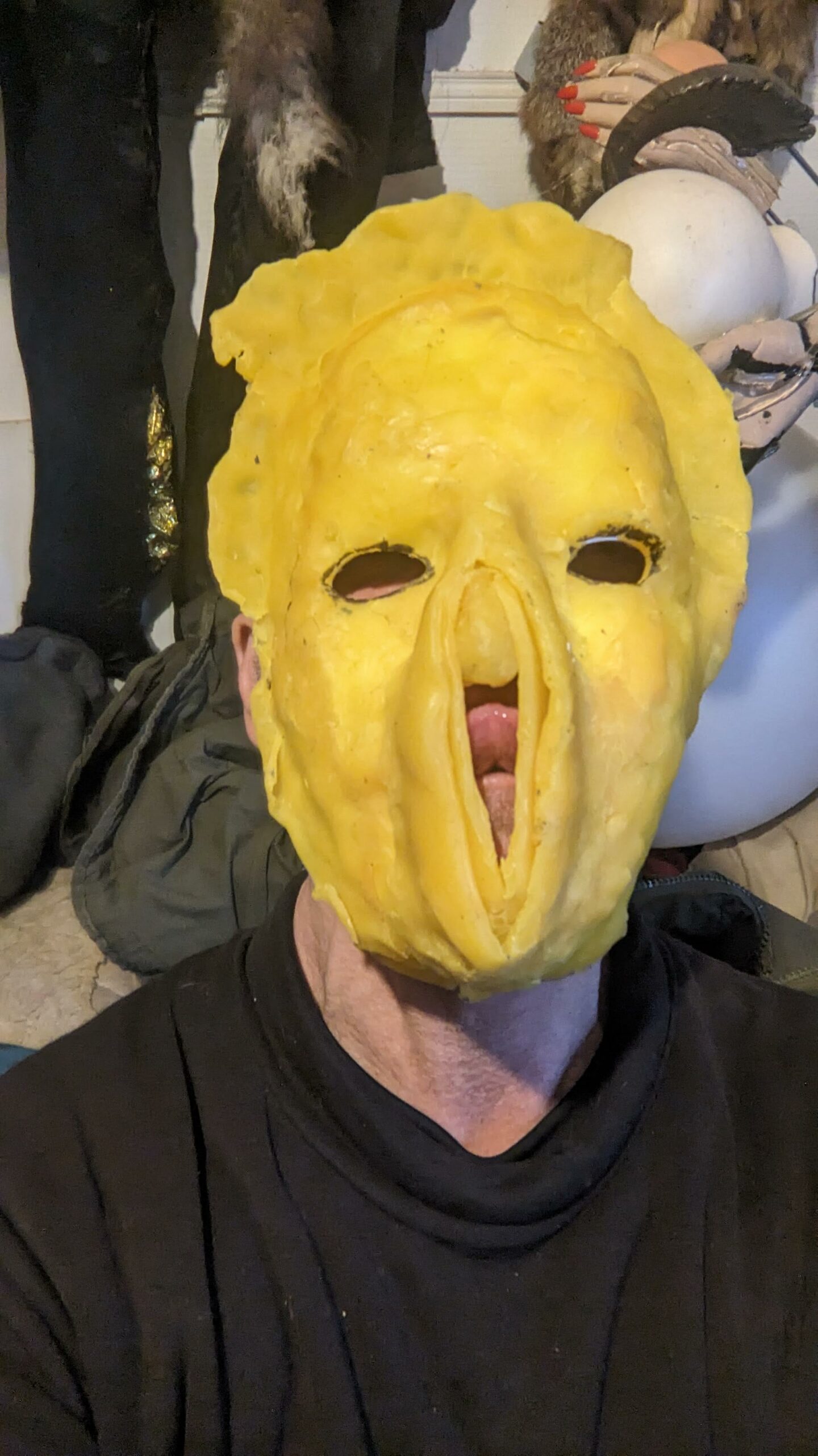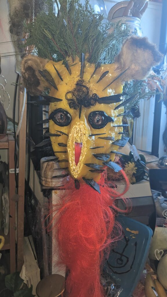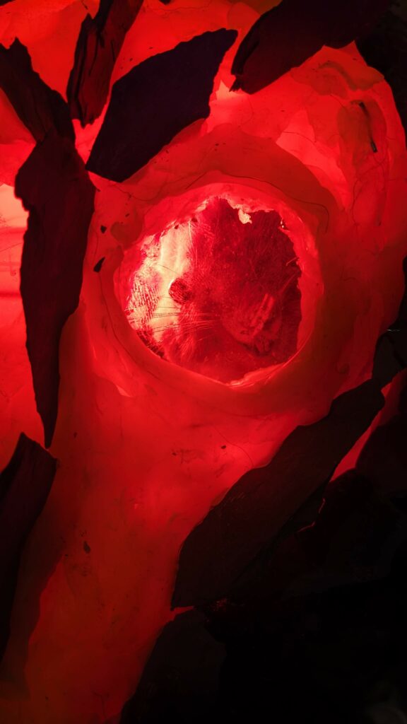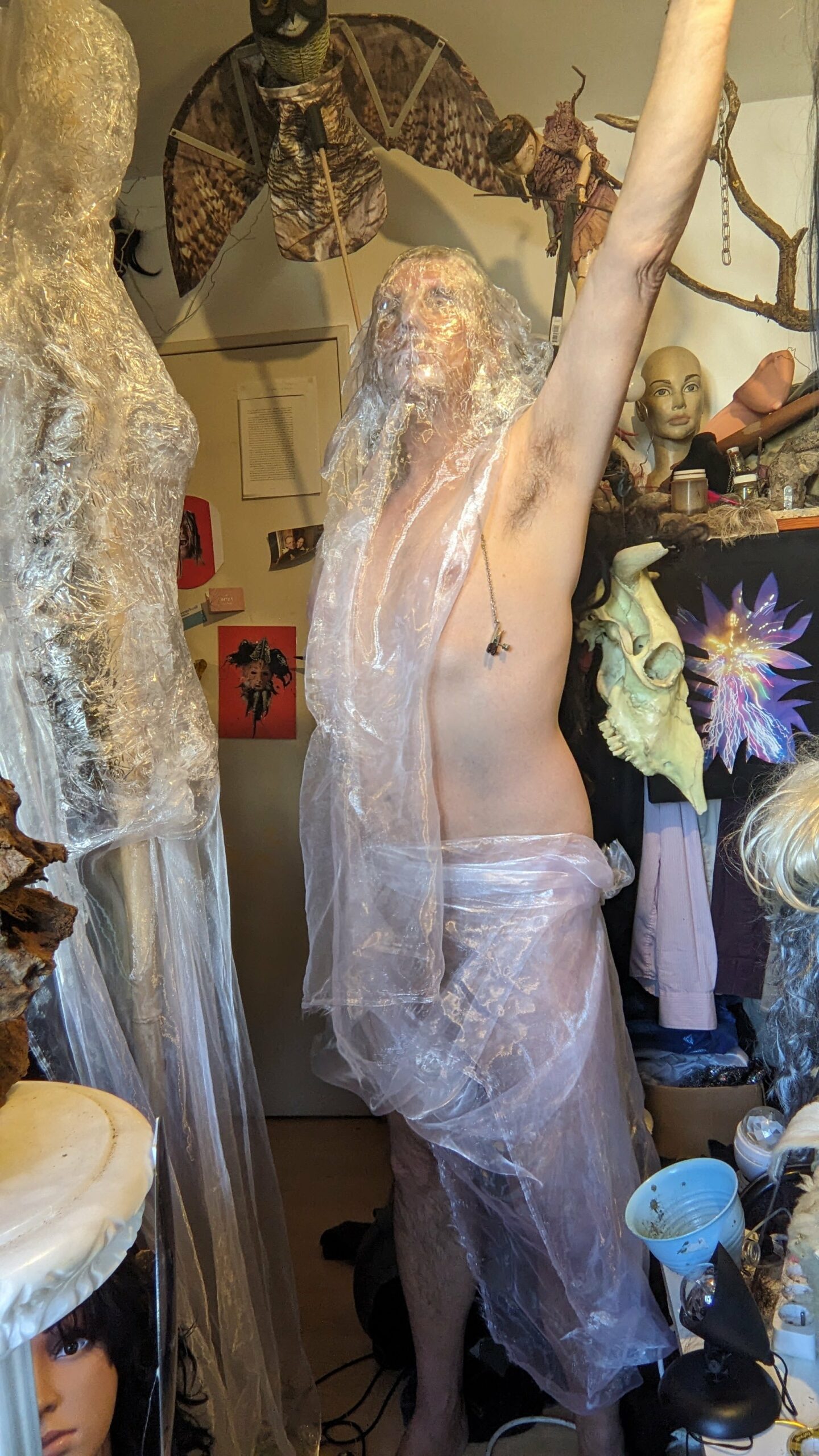 est : lampe himérinale, himérétique (favorise magiquement l’envie bestialeuse de sexe ! c’est ça, oui, oui), fixe-mâle, mobile-femelle, mélangeation de genre (animal, végértal, humain, unique-multiple, hermaaaafrodite), qui vit, qui meurt, dont la bite est baisable, qui peut s’auto-lécher le clito, qui peut faire une cunni-danse, je suis aussi la lampe et porte le masque vulvique, ha, ha, du pornolithique, petite phénoménologie de la temporalité de ma transidentité, puis aussi, contient du dedans qui contemple le dehors où nous sommes, et inversement dans l’autre sens bien sûr, ‘est prodigieux d’abymisationnement…