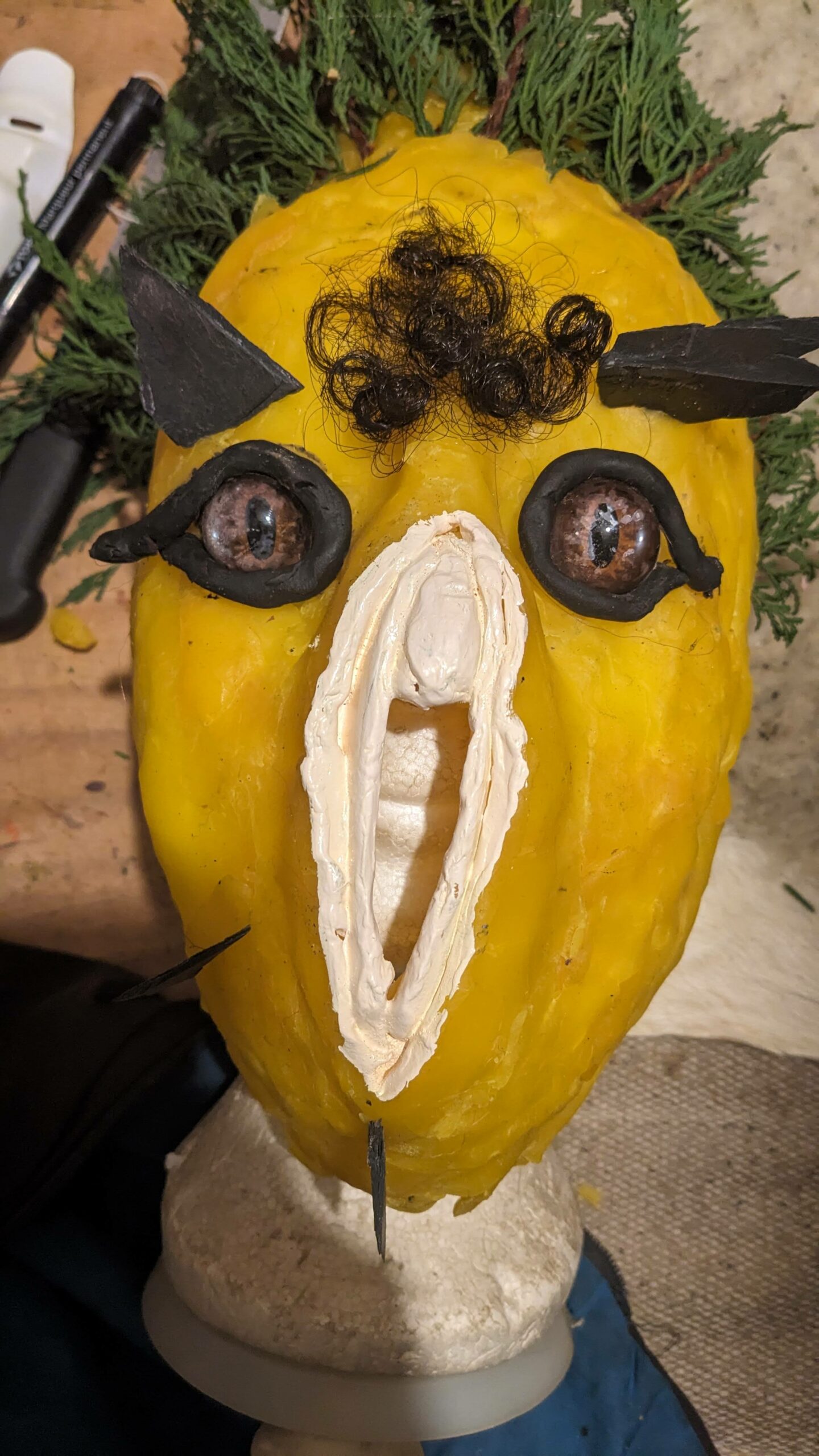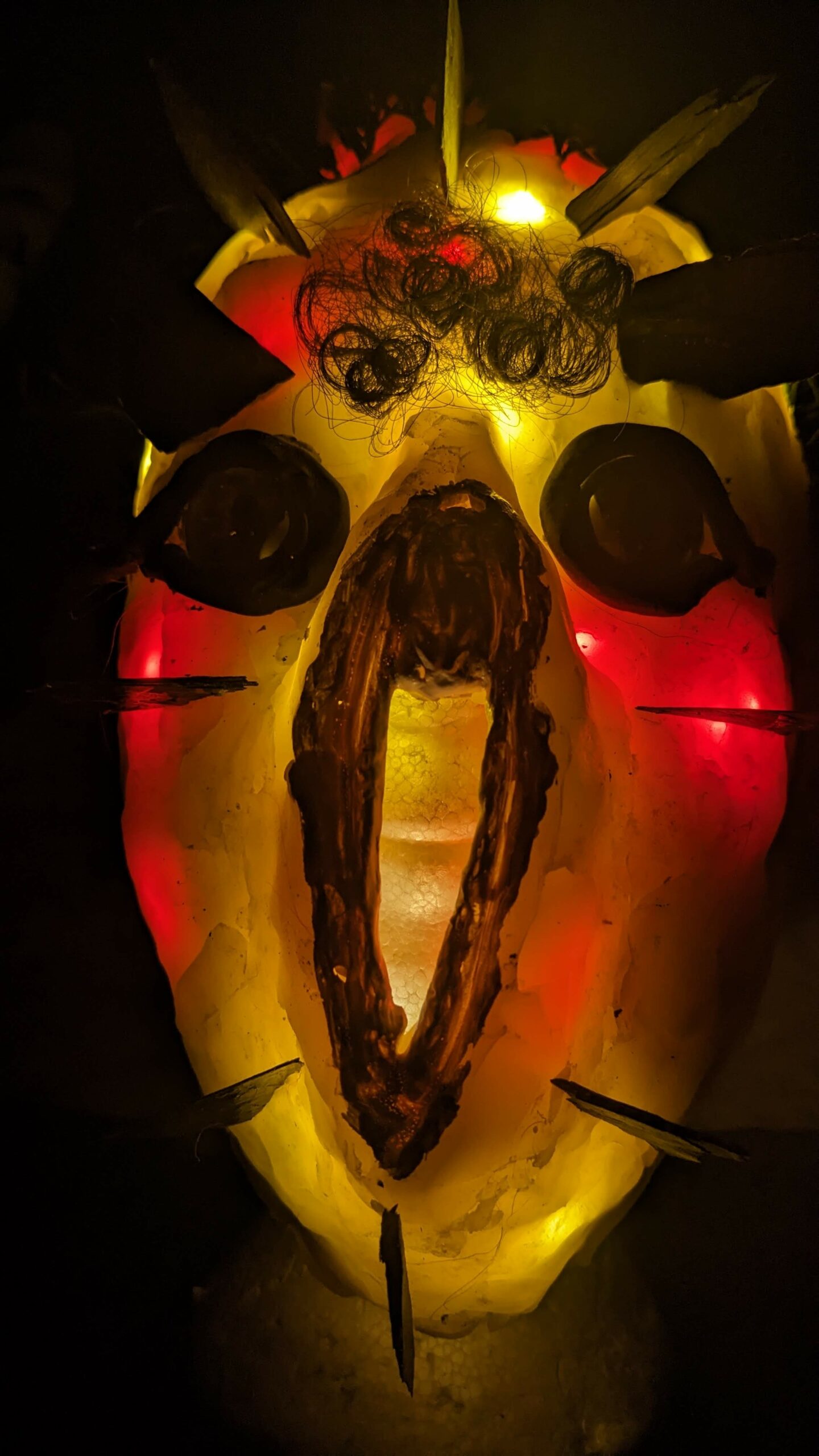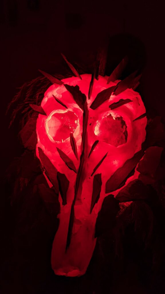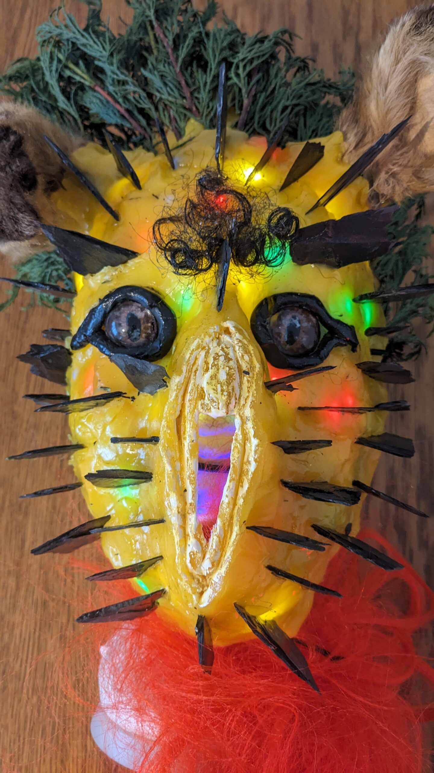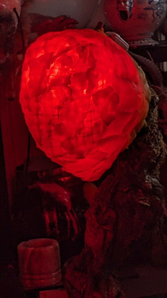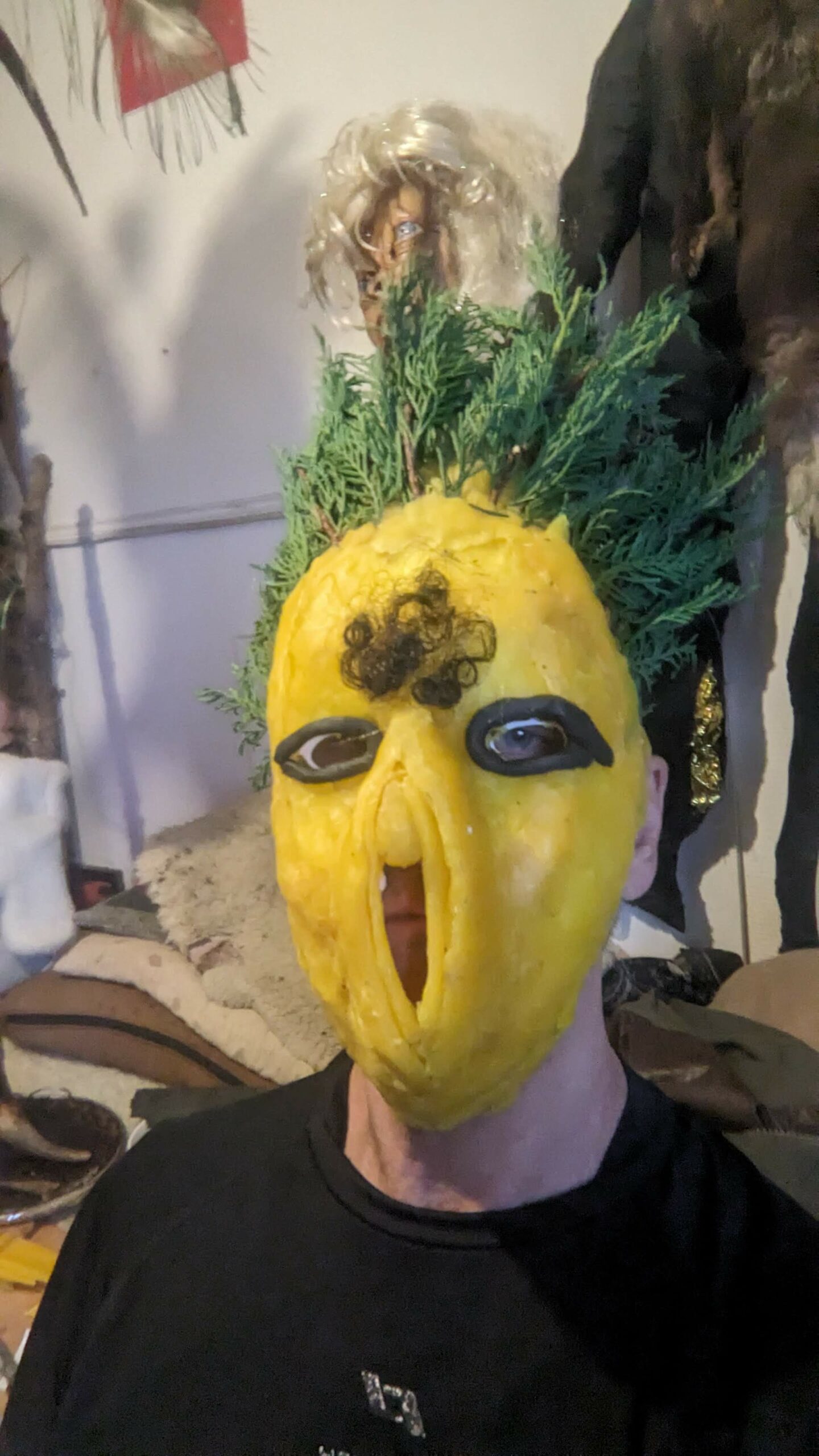 est : lampe himérinale, himérétique (favorise magiquement l’envie bestialeuse de sexe ! c’est ça, oui, oui), fixe-mâle, mobile-femelle, mélangeation de genre (animal, végértal, humain, unique-multiple, hermaaaafrodite), qui vit, qui meurt, dont la bite est baisable, qui peut s’auto-lécher le clito, qui peut faire une cunni-danse, je suis aussi la lampe et porte le masque vulvique, ha, ha, du pornolithique, petite phénoménologie de la temporalité de ma transidentité, puis aussi, contient du dedans qui contemple le dehors où nous sommes, et inversement dans l’autre sens bien sûr, ‘est prodigieux d’abymisationnement…