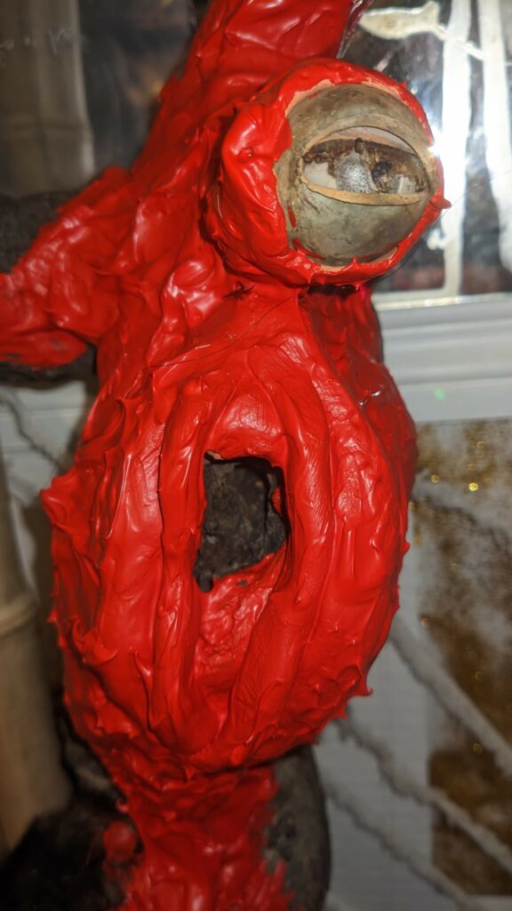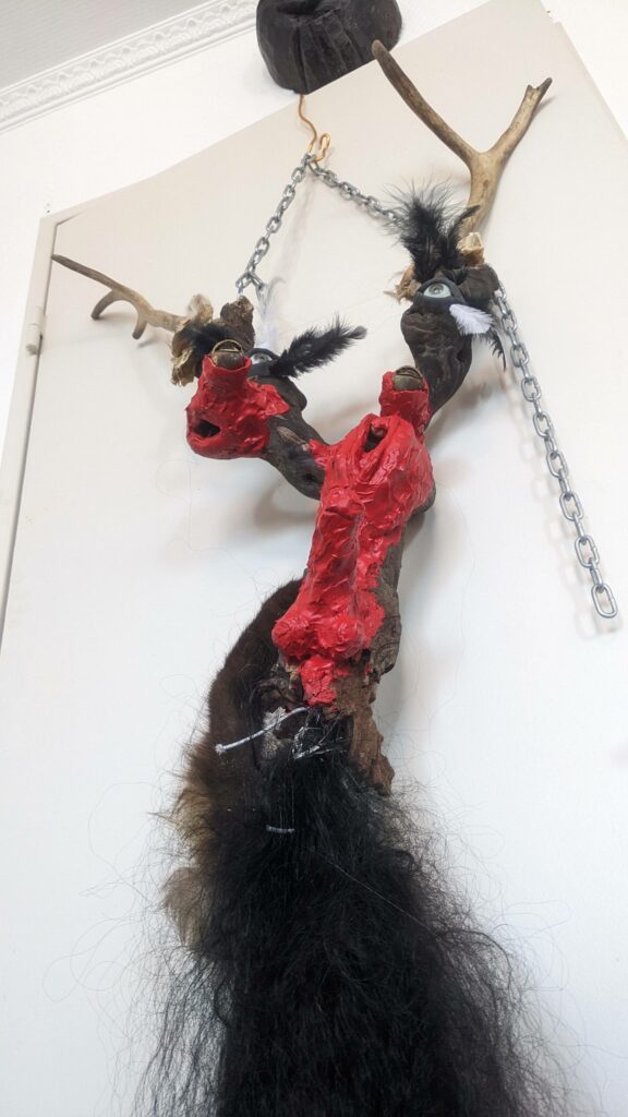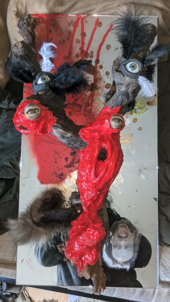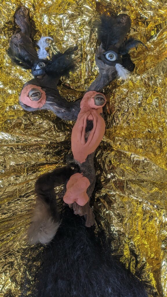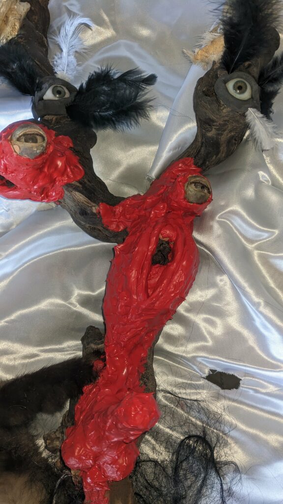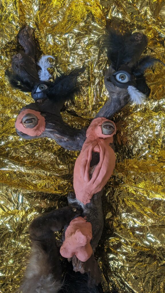 Ljoudune est l’ensexualeuse. La giclance spermatique, vermeille, de Ljoudune sur iéréïs. Ljoudune-masque dévoile et exacerbosse l’identitanité sexuelleuse. Pfff, c’est hermaphroditement fait de bois, d’animaux divers, de quadruple vision (les oculaires protubérances), d’une bucco-vulve, d’un carmin phallus, d’une sombre pilosirté. C’est grand mélange, dis-donc ! So, das ist ein masque de pouvoir très-fort ! Son effet m’a, moi confesse oui, emmenaillé très loin, firnalement… Encore Ljoudune, qui est donc tout ? Ca demande : “ se peutre-t-l qu’il existencille forme de mémoire de la temporelisante substance ?” Elle une autreuse qurestion, qui est bien plus mysterineuse : « charge quelle treutons peuvent levailler, jouir moi ? » Ljoudune donne et confère force de s’abreuviller à la pure salope de naissance même de la source trouble libidineuse. Gicle et gonfle, ça… Alors, c’est troublant, les anciennes recettes alchirmiques me sont donc fort fécondineuses ? Quoi ? Quoi ? vouloir que ma vie soit un orgasme permanent… Maintenant, description de moi et de ce que je preux fairiner, hop : je possède, tel foutue pieuvre, longs et nombreux appendices sexuels, outre ma biette, cela va de soi, bleus et visqueux et extensibles sur une quinzaine de mètres, capables d’aller très intimement toucher quiconque s’offrille à moa ! Ils peuvent aller fouailler bouche, tripotiner clitoris, jouer avec anus ou caresser hanches, tout est possible, ils s’insèrent et lacèrent où bon semble à moa… ils peuvent soit sortir du haut de mon crâne, s’entrouvrant alors comme vulve humide, soit être extensionnement dardant et s’étirant de mes yeux, doigts, tétons ou langue… une fois la cible atteiente, il peuvent conserver leur forme ophidoïne (et liquiditive, ha, ha, ha) soit prendre autonomie et se coller comme racine apparente du lierre sur et SOUS la peau ! imagine, leurs attouchements peuvent être faits à même l’organe ! ach, que de sensations démultiplionnées ! Je peux en outre et de plus, par mes lèvres comme crachat de postillons (c’est le même bruit), projeter un nuage gazeux de sexoline, venant envellopiner ma proie et brouleverser son enérgie sexuelleuse. Cela occasionne forts troubles invisible et s’avèreuse très rigolo à observer ! ha, ha, ha… La personne visée est alors cernée par une infinité de points bleus crépitants et voletants en tous sens autours d’elle, comme atomes bavant et hurlant de désir ! C’est si beau et jouissif ! bravo moi ! la bête sexuelle, le magicien du cul ! Ainsi, voici Ljoudune-iéréïs-siegline asperginées de liqueur spermatique, si beaux, si purs… De son ventre vulvaire, pouvaient à tout instant giclationner les filaments tentaculaires sexuels. elles sont représentées couvertes de la sécrétion sexualisante, prenant peu à peu possession de la peau de leur proie, jusqu’à en faire pu objet orgasmatique. (nos lectures changent, un peu de psychologie, j’en ai froid dans le dos ety l’anus !)