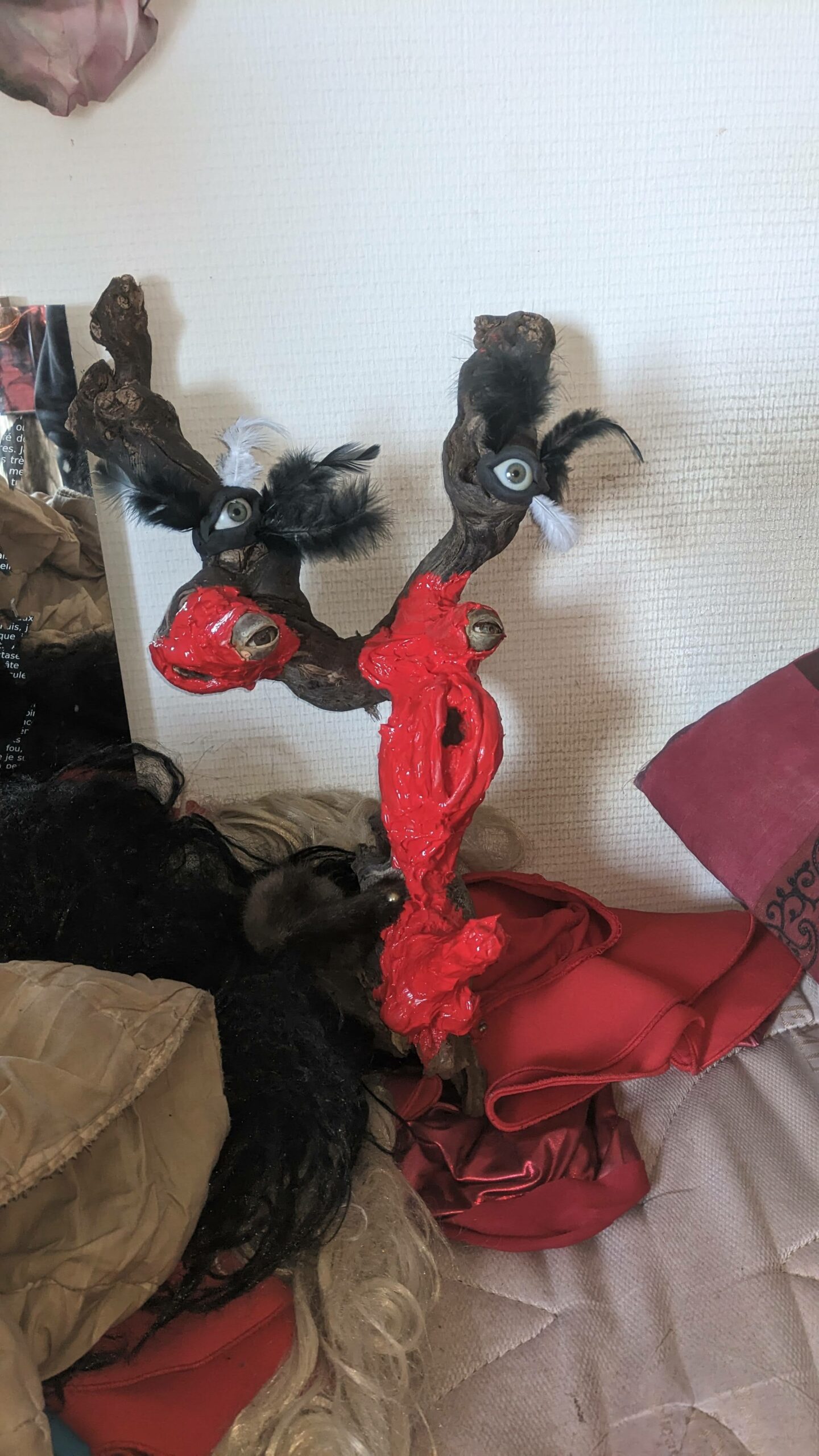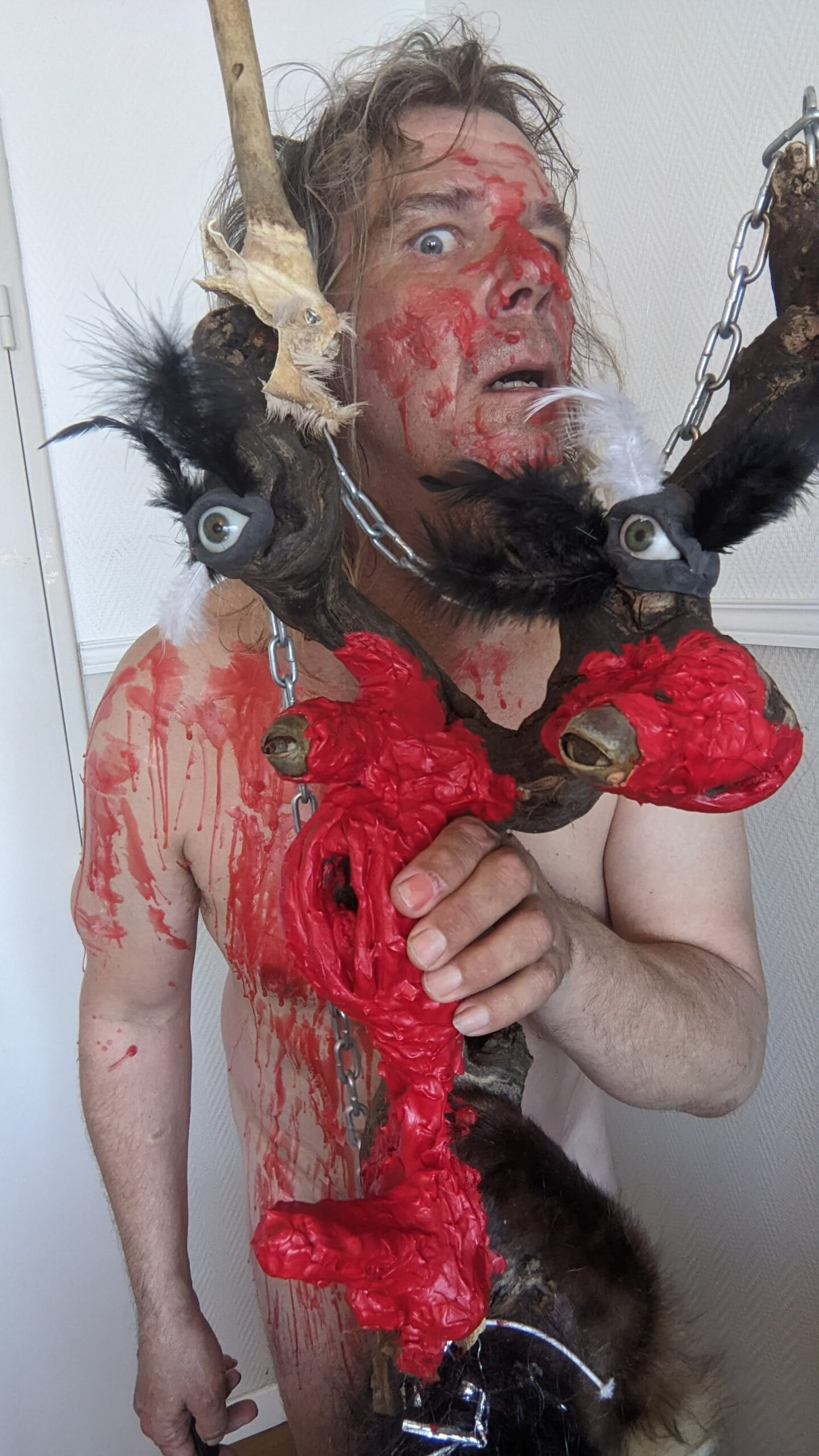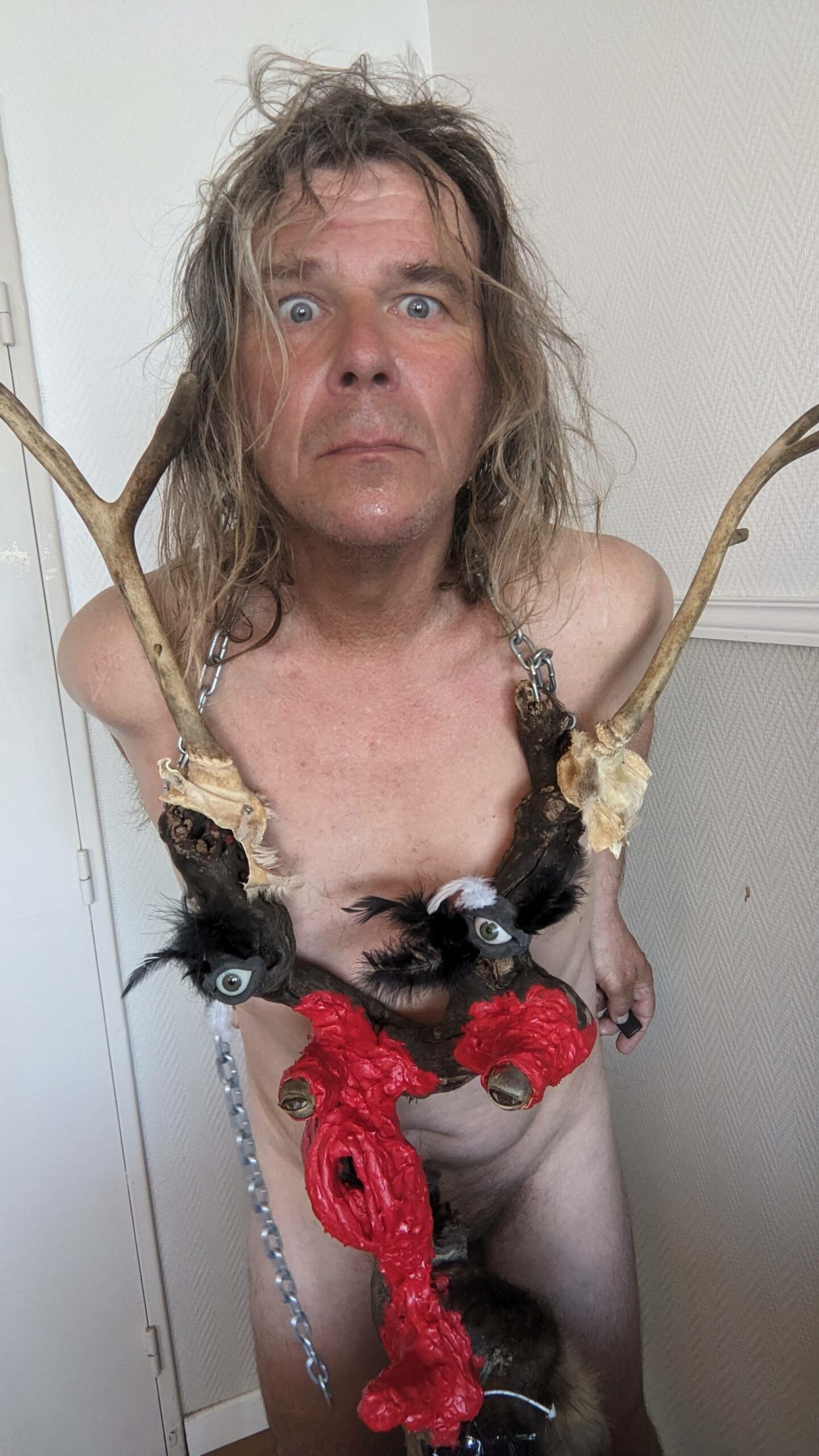 Ljoudune est l’ensexualeuse. La giclance spermatique, vermeille, de Ljoudune sur iéréïs. Ljoudune-masque dévoile et exacerbosse l’identitanité sexuelleuse. Pfff, c’est hermaphroditement fait de bois, d’animaux divers, de quadruple vision (les oculaires protubérances), d’une bucco-vulve, d’un carmin phallus, d’une sombre pilosirté. C’est grand mélange, dis-donc ! So, das ist ein masque de pouvoir très-fort ! Son effet m’a, moi confesse oui, emmenaillé très loin, firnalement… Encore Ljoudune, qui est donc tout ? Ca demande : “ se peutre-t-l qu’il existencille forme de mémoire de la temporelisante substance ?” Elle une autreuse qurestion, qui est bien plus mysterineuse : « charge quelle treutons peuvent levailler, jouir moi ? » Ljoudune donne et confère force de s’abreuviller à la pure salope de naissance même de la source trouble libidineuse. Gicle et gonfle, ça… Alors, c’est troublant, les anciennes recettes alchirmiques me sont donc fort fécondineuses ? Quoi ? Quoi ? vouloir que ma vie soit un orgasme permanent… Maintenant, description de moi et de ce que je preux fairiner, hop : je possède, tel foutue pieuvre, longs et nombreux appendices sexuels, outre ma biette, cela va de soi, bleus et visqueux et extensibles sur une quinzaine de mètres, capables d’aller très intimement toucher quiconque s’offrille à moa ! Ils peuvent aller fouailler bouche, tripotiner clitoris, jouer avec anus ou caresser hanches, tout est possible, ils s’insèrent et lacèrent où bon semble à moa… ils peuvent soit sortir du haut de mon crâne, s’entrouvrant alors comme vulve humide, soit être extensionnement dardant et s’étirant de mes yeux, doigts, tétons ou langue… une fois la cible atteiente, il peuvent conserver leur forme ophidoïne (et liquiditive, ha, ha, ha) soit prendre autonomie et se coller comme racine apparente du lierre sur et SOUS la peau ! imagine, leurs attouchements peuvent être faits à même l’organe ! ach, que de sensations démultiplionnées ! Je peux en outre et de plus, par mes lèvres comme crachat de postillons (c’est le même bruit), projeter un nuage gazeux de sexoline, venant envellopiner ma proie et brouleverser son enérgie sexuelleuse. Cela occasionne forts troubles invisible et s’avèreuse très rigolo à observer ! ha, ha, ha… La personne visée est alors cernée par une infinité de points bleus crépitants et voletants en tous sens autours d’elle, comme atomes bavant et hurlant de désir ! C’est si beau et jouissif ! bravo moi ! la bête sexuelle, le magicien du cul ! Ainsi, voici Ljoudune-iéréïs-siegline asperginées de liqueur spermatique, si beaux, si purs… De son ventre vulvaire, pouvaient à tout instant giclationner les filaments tentaculaires sexuels. elles sont représentées couvertes de la sécrétion sexualisante, prenant peu à peu possession de la peau de leur proie, jusqu’à en faire pu objet orgasmatique. (nos lectures changent, un peu de psychologie, j’en ai froid dans le dos ety l’anus !)