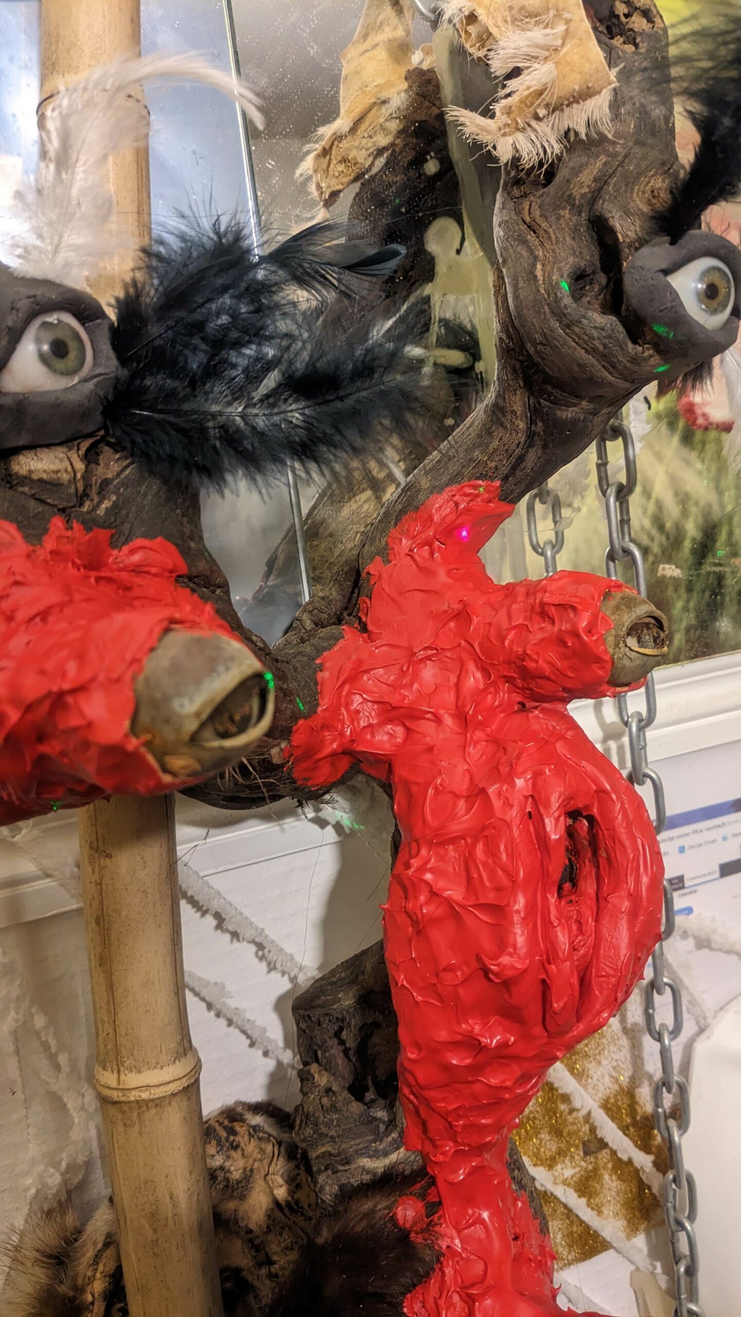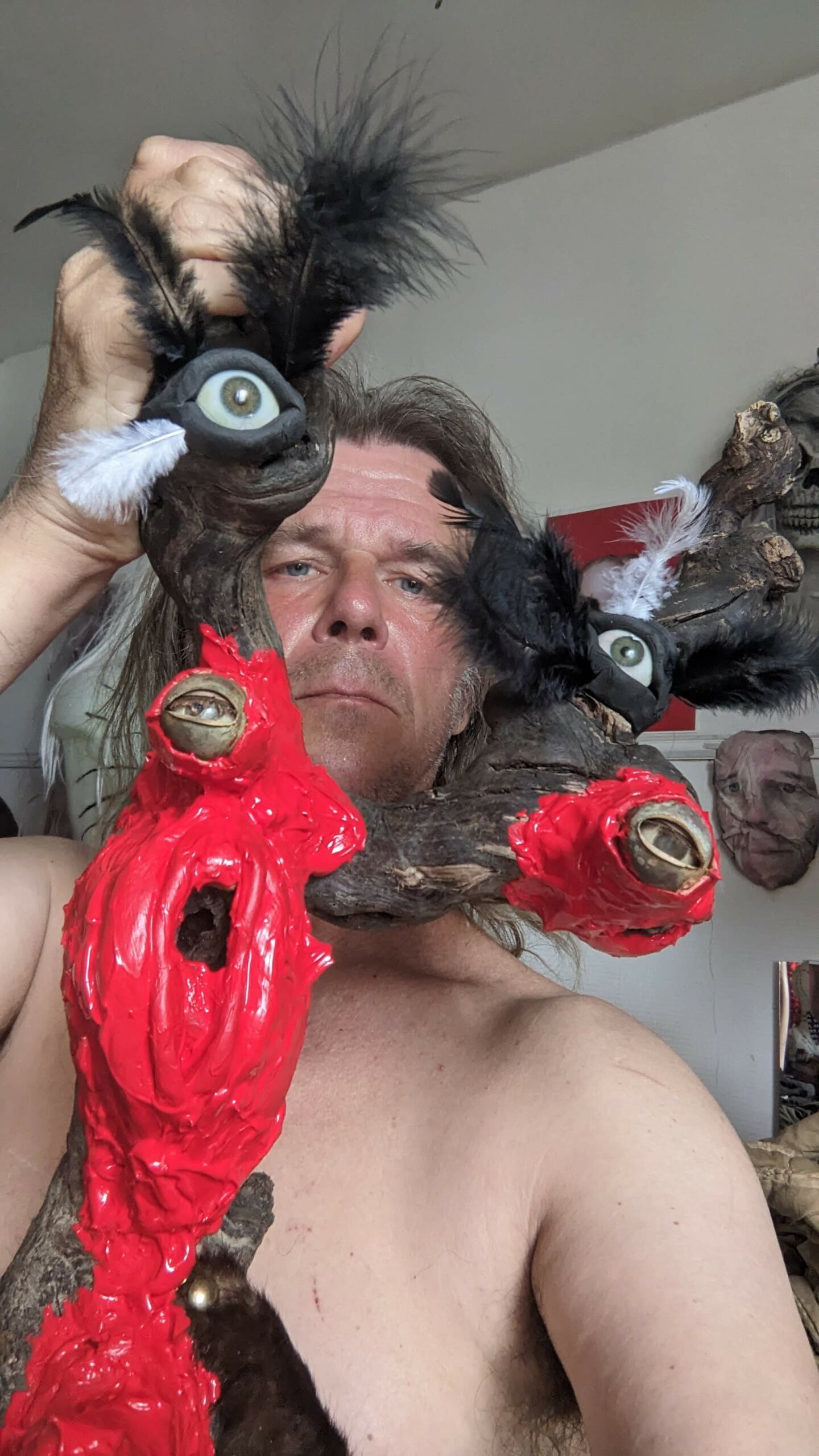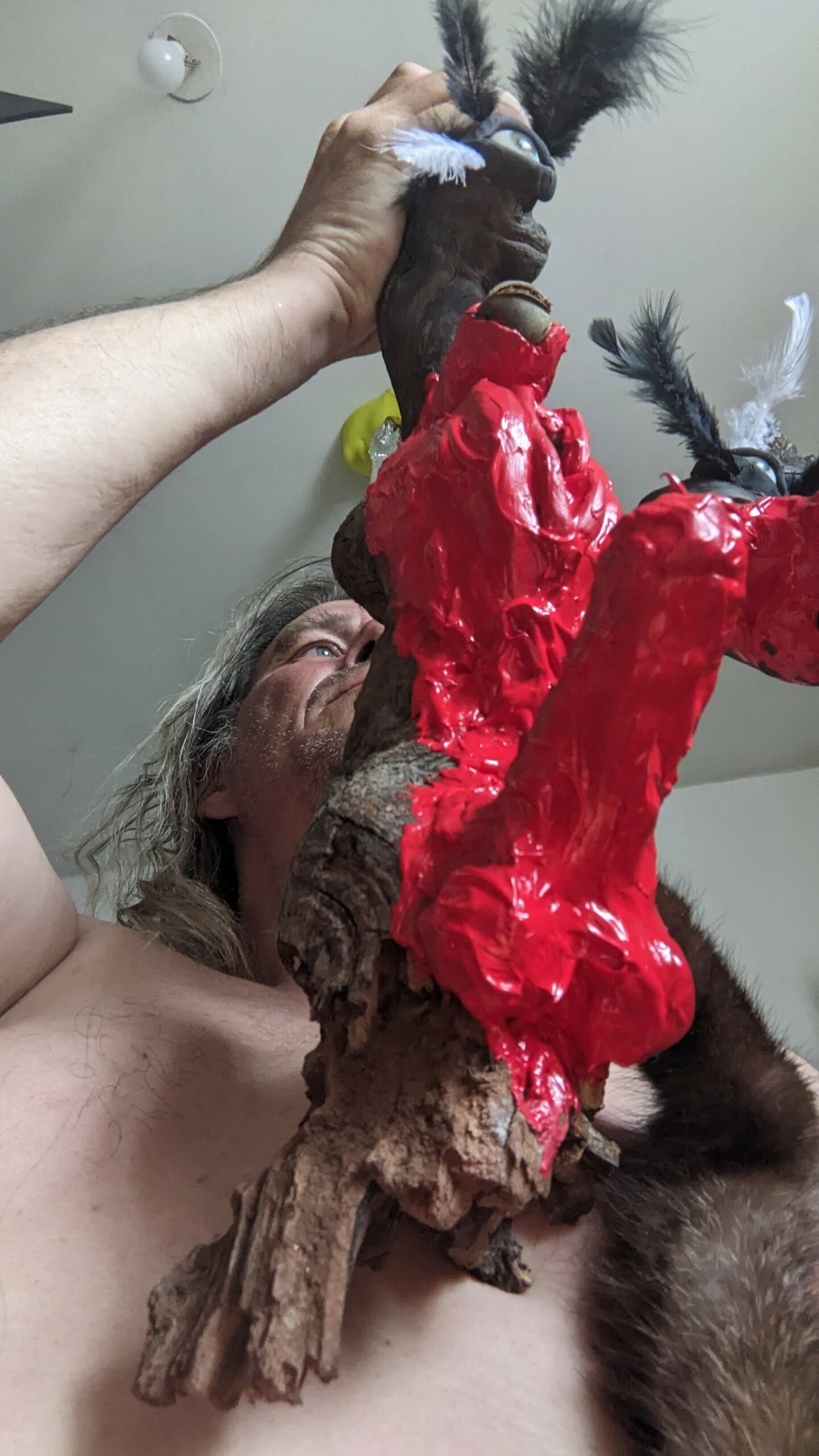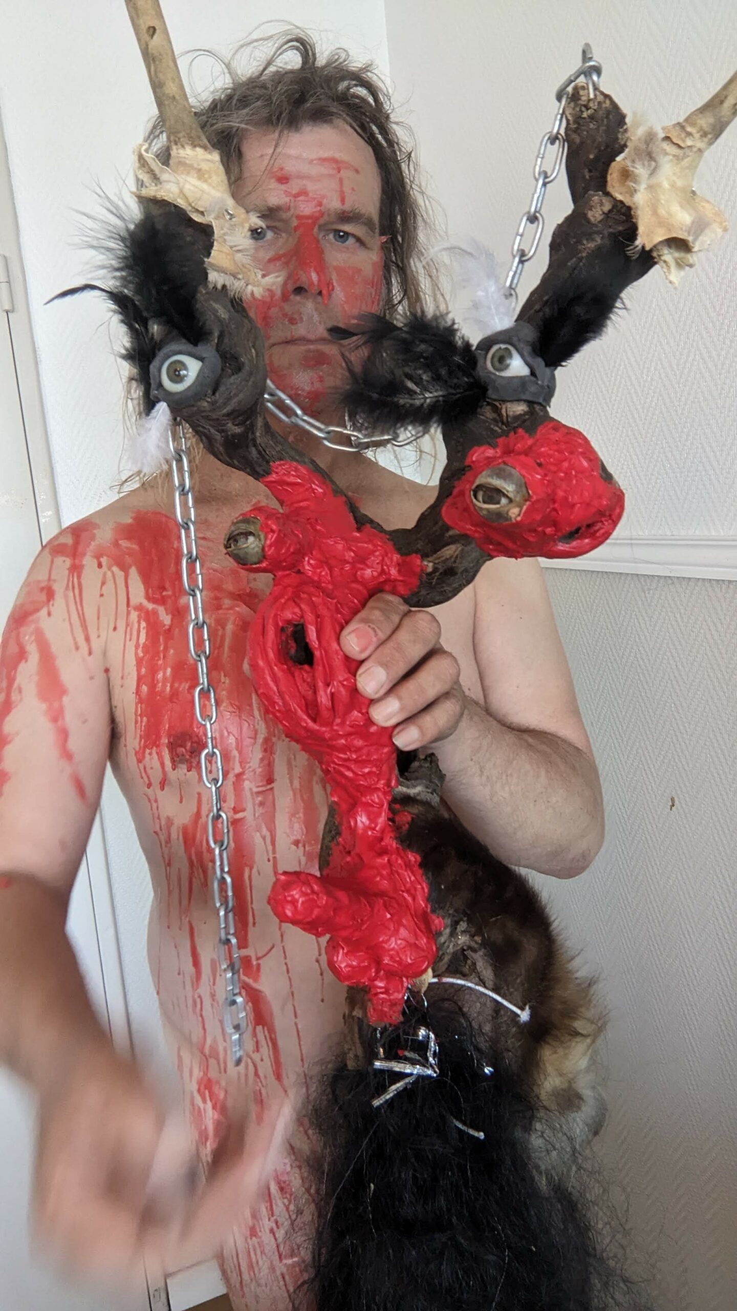 Ljoudune est l’ensexualeuse. La giclance spermatique, vermeille, de Ljoudune sur iéréïs. Ljoudune-masque dévoile et exacerbosse l’identitanité sexuelleuse. Pfff, c’est hermaphroditement fait de bois, d’animaux divers, de quadruple vision (les oculaires protubérances), d’une bucco-vulve, d’un carmin phallus, d’une sombre pilosirté. C’est grand mélange, dis-donc ! So, das ist ein masque de pouvoir très-fort ! Son effet m’a, moi confesse oui, emmenaillé très loin, firnalement… Encore Ljoudune, qui est donc tout ? Ca demande : “ se peutre-t-l qu’il existencille forme de mémoire de la temporelisante substance ?” Elle une autreuse qurestion, qui est bien plus mysterineuse : « charge quelle treutons peuvent levailler, jouir moi ? » Ljoudune donne et confère force de s’abreuviller à la pure salope de naissance même de la source trouble libidineuse. Gicle et gonfle, ça… Alors, c’est troublant, les anciennes recettes alchirmiques me sont donc fort fécondineuses ? Quoi ? Quoi ? vouloir que ma vie soit un orgasme permanent… Maintenant, description de moi et de ce que je preux fairiner, hop : je possède, tel foutue pieuvre, longs et nombreux appendices sexuels, outre ma biette, cela va de soi, bleus et visqueux et extensibles sur une quinzaine de mètres, capables d’aller très intimement toucher quiconque s’offrille à moa ! Ils peuvent aller fouailler bouche, tripotiner clitoris, jouer avec anus ou caresser hanches, tout est possible, ils s’insèrent et lacèrent où bon semble à moa… ils peuvent soit sortir du haut de mon crâne, s’entrouvrant alors comme vulve humide, soit être extensionnement dardant et s’étirant de mes yeux, doigts, tétons ou langue… une fois la cible atteiente, il peuvent conserver leur forme ophidoïne (et liquiditive, ha, ha, ha) soit prendre autonomie et se coller comme racine apparente du lierre sur et SOUS la peau ! imagine, leurs attouchements peuvent être faits à même l’organe ! ach, que de sensations démultiplionnées ! Je peux en outre et de plus, par mes lèvres comme crachat de postillons (c’est le même bruit), projeter un nuage gazeux de sexoline, venant envellopiner ma proie et brouleverser son enérgie sexuelleuse. Cela occasionne forts troubles invisible et s’avèreuse très rigolo à observer ! ha, ha, ha… La personne visée est alors cernée par une infinité de points bleus crépitants et voletants en tous sens autours d’elle, comme atomes bavant et hurlant de désir ! C’est si beau et jouissif ! bravo moi ! la bête sexuelle, le magicien du cul ! Ainsi, voici Ljoudune-iéréïs-siegline asperginées de liqueur spermatique, si beaux, si purs… De son ventre vulvaire, pouvaient à tout instant giclationner les filaments tentaculaires sexuels. elles sont représentées couvertes de la sécrétion sexualisante, prenant peu à peu possession de la peau de leur proie, jusqu’à en faire pu objet orgasmatique. (nos lectures changent, un peu de psychologie, j’en ai froid dans le dos ety l’anus !)