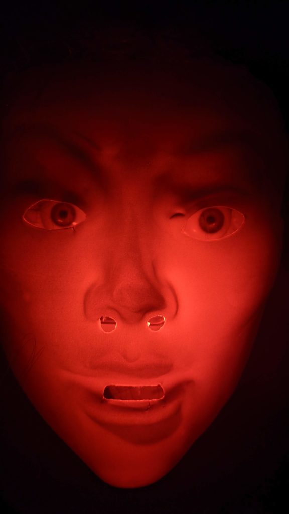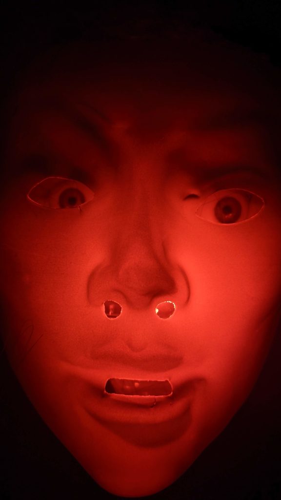 Où l’on répond enfin aux quouestions suivrantes, bouleversant l’équilibre mondal : que voit un masque ? L’intérieur d’un masque peut-il être un masque ? Suis-je un masque ? De quoi suis-je le masque ? Y-a-t-il autre chose qu’un masque ? Oh là là, cela tout me chavirotte le crânion…